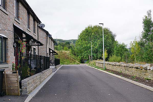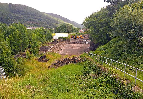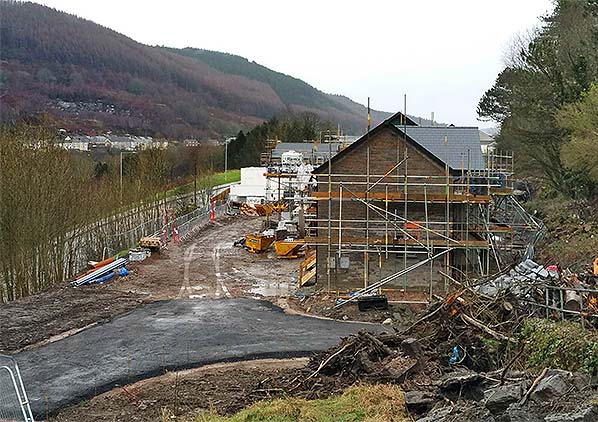 Development of new housing on the Aberfan station site is underway in July 2016. The only evidence of the former station is the ramp down to the down platform.