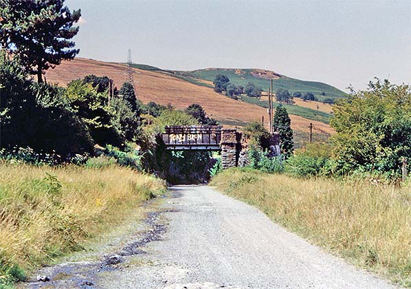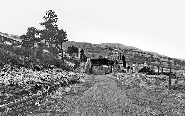 Aberfan station looking south east from Railway Hill c1986. A widened Walter's Terrace now occupies part of the goods yard.