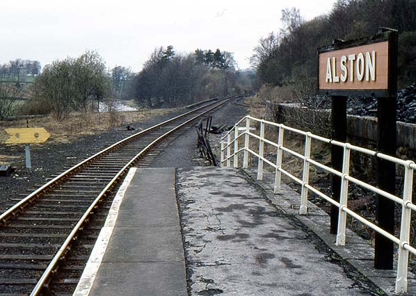 Looking north from Alston station in April 1976. The goods dock is seen on the right.