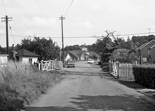 Aspley Guise level crossing looking south along Station Road towards the village c late 1960s. The station is to the left of the crossing.