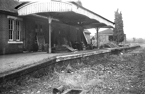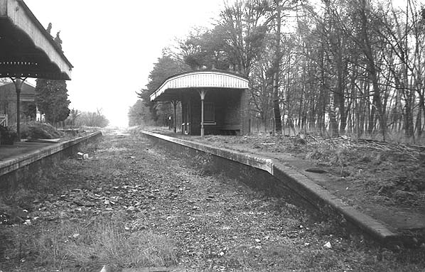 Photo by John Clark ![]() In December 1972 the station was derelict but largely intact. Undergrowth is beginning to take over the platforms and track bed.