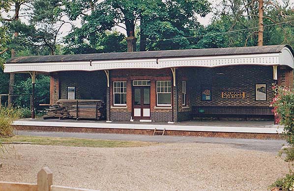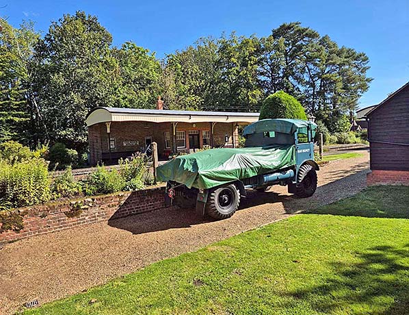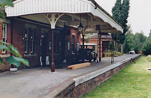 Baynards station looking north from the Station Road level crossing in January 1989. Station owner Frazer Clayton owns a number of preserved vehicles which are kept at the station. Under the canopy a 1951 an AEC Mammoth Major heavy lorry. They were renowned for their robust eight-wheel configurations (8x4), exceptional load capacity (up to 15 tons), and dependable engineering, becoming staples in heavy haulage and construction from the 1930s through the 1960s.