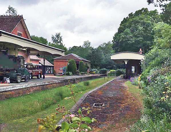 Photo by Andy Potter, reproduced from Geograph under creative commons licence ![]() Baynards station looking north in July 2014 during an official visit by the Railway Ramblers. A preserved 1951 AEC Mammoth Major heavy lorry is seen on the left. It has been restored in Baynards Haulage livery.