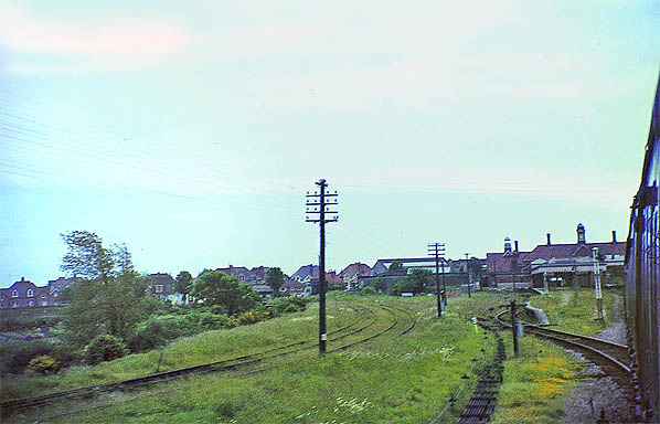 A DEMU has just left Bexhill West station bound for Crowhurst c 1964. The goods yard closed on 1 September 1963, and although the sidings are still in place they are clearly out of use.