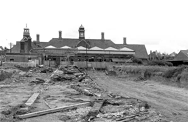 Bexhill West station c 1966 during demolition of the canopy. This view is looking south