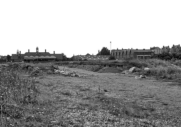 Looking south towards Bexhill West station c 1967, shortly before the platforms were demolished. The engine shed with its northlight roof is seen on the right