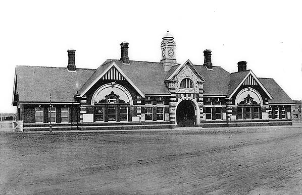 Bexhill West station forecourt c1906. The building was designed by architects C S Barry and C E Mercer to reflect the SER’s ambitions for the line. These ambitions never lived up to expectations. Biddle (1973) describes the station as "excessively showy"