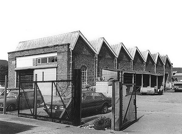 Bexhill West engine shed seen from the north end in 1987. At this time the shed was largely unaltered with its northlight roof intact.