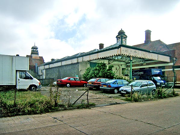 Bexhill West station concourse in October 2007. Part of the concourse has been filled in to create new storage rooms while the west end is used as a loading dock.