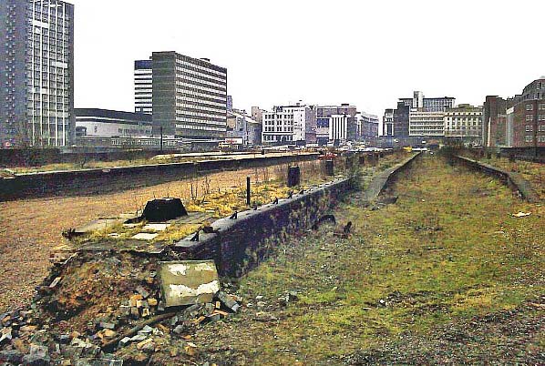 Demolition of a vast majority of the station undercroft is seen here in 1985.Photo by Ian Baker The sheer scale of the undercroft is evident here, in 1985, with its white glazed bricks to brighten up what must have been a gloomy interior.Photo by Ian Baker
