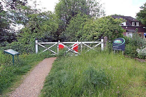 Photo by Nick Catford ![]() South of the Old Station Roundabout 300yd of the old trackbed has been retained as a public footpath and now forms part of the Pilgrims' Trail footpath which was created by the Bishops Waltham Society and now forms part of a 155-mile long-distance footpath that connects Winchester Cathedral to Mont St-Michel in Normandy.
