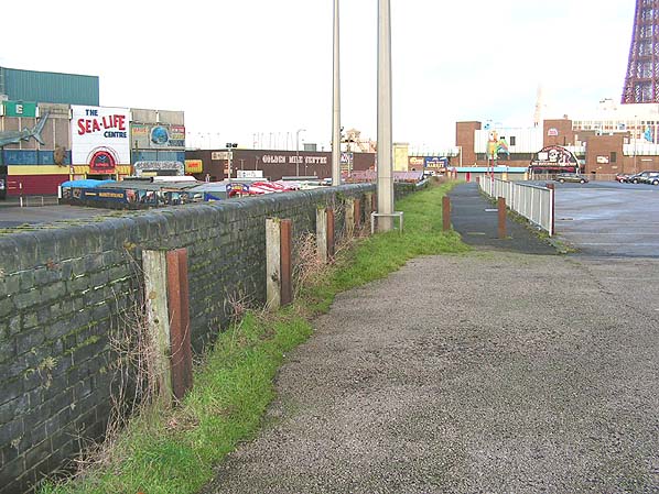Looking north from the west side of Blackpool Central Station showing surviving boundary wall.