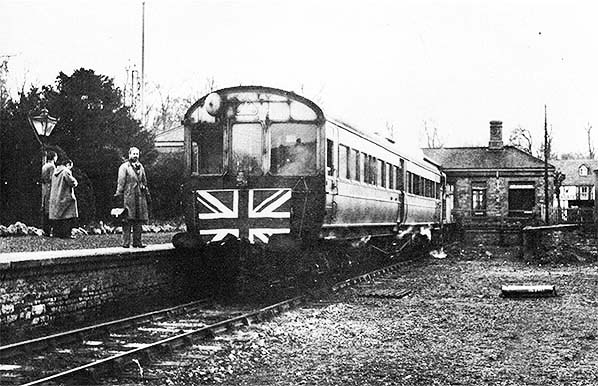 Photo from Michael Jordan collection ![]() A more general view of the platform at Woodstock just prior to departure of the final train. Many of the people would have been locals out to witness the occasion and one has to wonder just how many of them had actually used the trains on a regular basis; the Woodstock branch was, after all, noted for its light passenger traffic and with many trains running empty other than on market days.