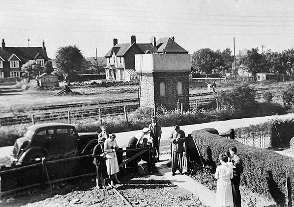 Photo from John Mann collection ![]() Another last day scene and as only one autotrailer is now present we are probably looking at what would be the 5.16PM departure. No. 1420 has already been adorned with various scribblings. A good number of ladies are present, no doubt local, and this was not untypical of branch line closures. Unfortunately most such people never, or rarely, used the trains and apart from market days in Oxford when the through trains were popular the Woodstock branch became infamous for its light or zero passenger loadings. During the Second World War a number of military bases were set up in the area but surprisingly given that in wartime passenger trains generally tended to be crowded, the Woodstock branch actually saw a dramatic fall in traffic from which it was never to recover. The purpose of this photograph would appear to have been the lady in a wheelchair, her attendant and the chap in the duffel coat who seems to have been overcome by a bout of hilarity. To the left of No. 1420 can be seen the end loading dock, described on some plans as a carriage landing which means it would have been used for loading road vehicles onto wagons. 'Carriage' in this context meant, however, horse-drawn vehicles. Woodstock's cattle pens were located on the Up side of the line and roughly opposite the signal box. On duty for the afternoon, or late, shift on the final day were Driver Harry Collins, Fireman Jack Loveridge and Guard Cecil Watkins. It is probably Jack Loveridge standing talking next to the locomotive cab.