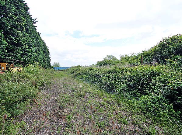 Looking north-west from Bottisham & Lode station in May 2015. The conifers have been planted on the degraded down platform.
