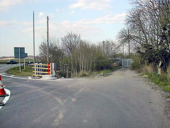 ![]() An April 2007 view of Brasted station site seen from the top of the approach road with the M25 just visible far left. This is a similar viewpoint to the picture above. The station building stood where the young trees are directly ahead of the camera but a little to their left. The former goods yard is beyond the gate in the distance; although fenced and secure it is derelict and appears to have been out of use for many years.
