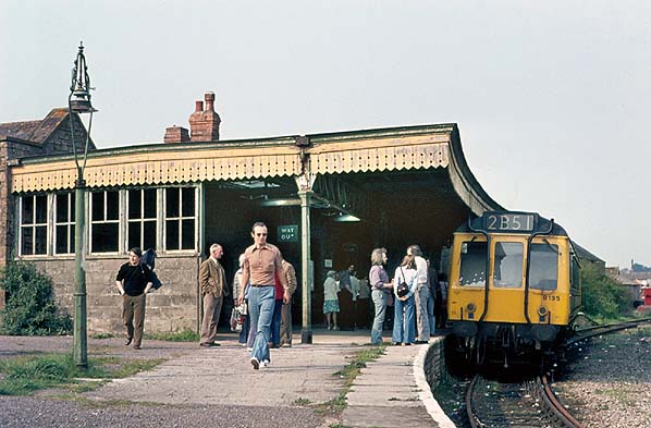 Enthusiasts gather on Bridport station on 25 April 1975, 9 days before closure of the branch.