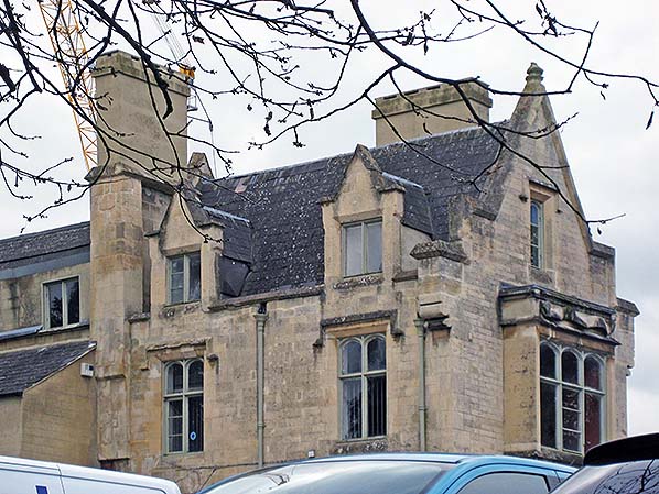 A view from the south east in April 2016. It provides a more detailed view of the ornate stonework around the first and second floor windows.
