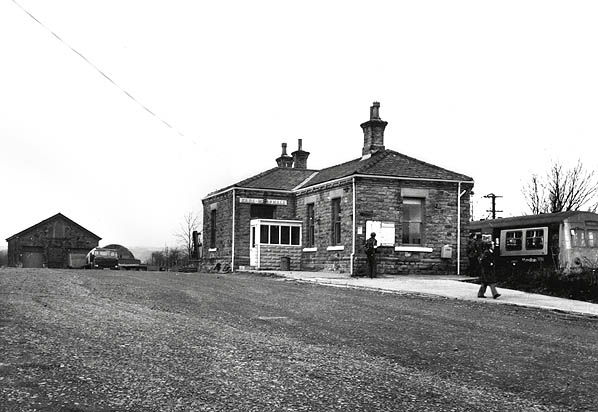 Station Name: CLAYTON WEST![]() Clayton West station forecourt in December 1982. A Class 110 'Calder Valley' DMU waits in the platform. By this date the booking office was no longer in use. The original entrance double doors have been removed and replaced with a window. The building is now leased to a company called Earl Marshall.