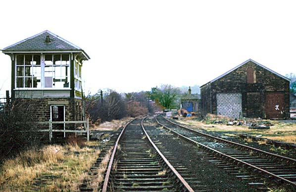 Looking west towards Clayton West station in December 1983. 11 months after closure of the line all the buildings are still intact.
