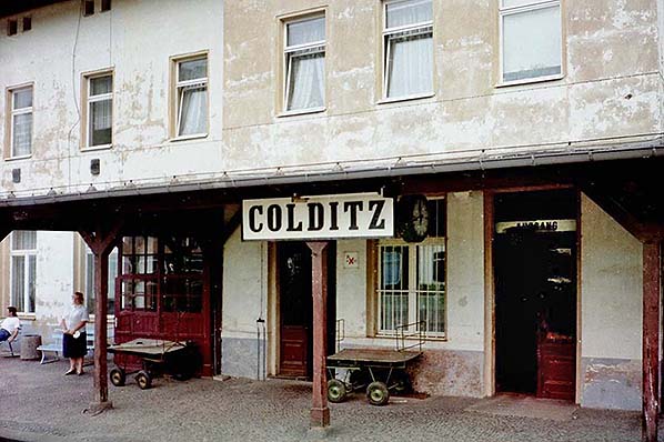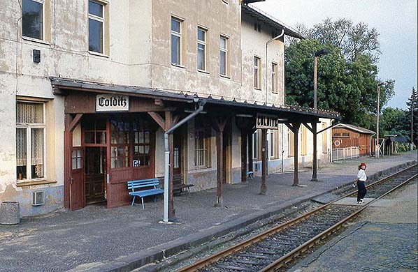 Photo from from TB7.77. Flickr Photostream ![]() Colditz station exit seen from a passing train in 1992. Presumably, one dor was the entrance from the booking office and the other door on the right was the exit (ausgang).