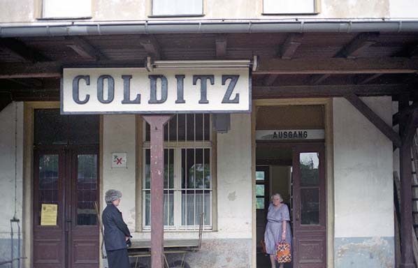 Photo by Paul Steane ![]() Colditz station entrance from the booking office c.1990s. The cast iron sign suspended from the canopy is the equivalent of our running in board. There was no signage oin the other platform.
