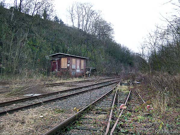 Photo by Max Schäfer ![]() Colditz B2 signal box opposite the entrance to the goods yard looking north in January 2005, 5 years after the line closed to all traffic. The line north was single track.