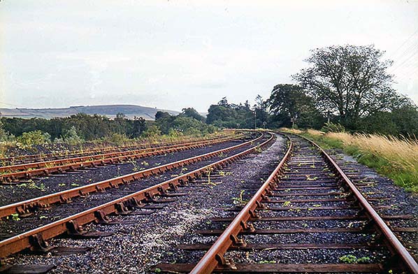 Trackwork of the Berwick – Kelso line and sidings near Coldstream c1964.