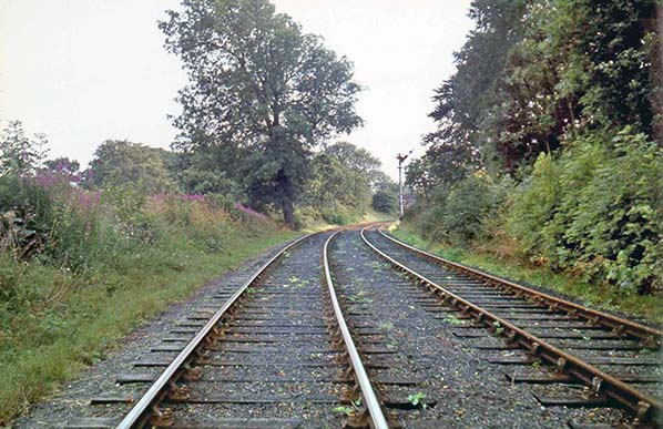 ![]() Station Name: COLDSTREAM![]() Looking south along the line to Kelso from a point about a quarter of a mile south of Coldstream station. In the nineteenth century military camps were situated on the inside of the curve ahead and sidings were provided to serve them, close to the junction with the Wooler and Alnwick line; it is likely that the construction of this line resulted in the removal of the sidings.