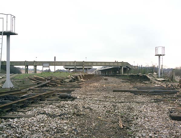 Looking west towards Coulsdon North Station in January 1984, after the track was lifted through Platforms 1 & 2.