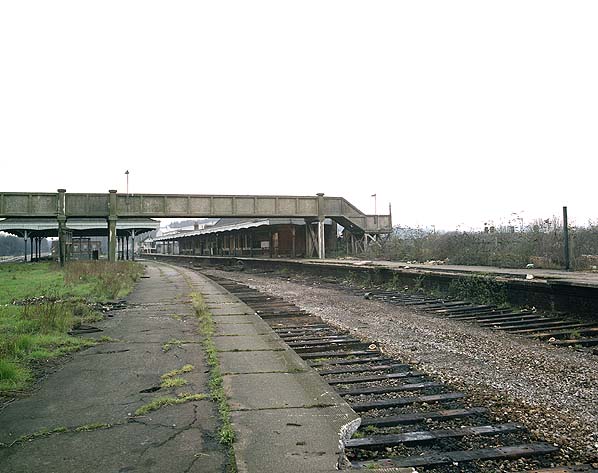 Coulsdon North Station in January 1984, after the track was lifted through Platforms 1 & 2.