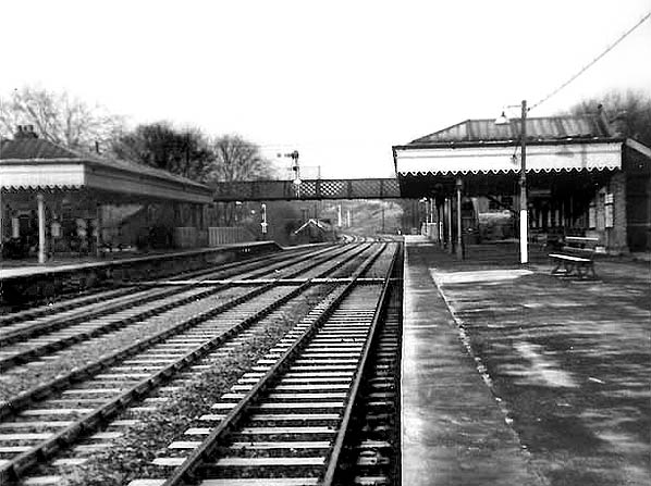 Crowhurst station looking north-west in January 1965, six months after the Bexhill West branch closed.Two railway cottages are seen beside the track in the distance, opposite Crowhurst No. 1 signal box. These predated the station by many years.Photo from Mike Pannell's collection Home Page