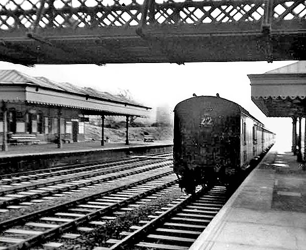 A DEMU (1013) bound for Hastings stands in the down platform at Crowhurst station in January 1965.