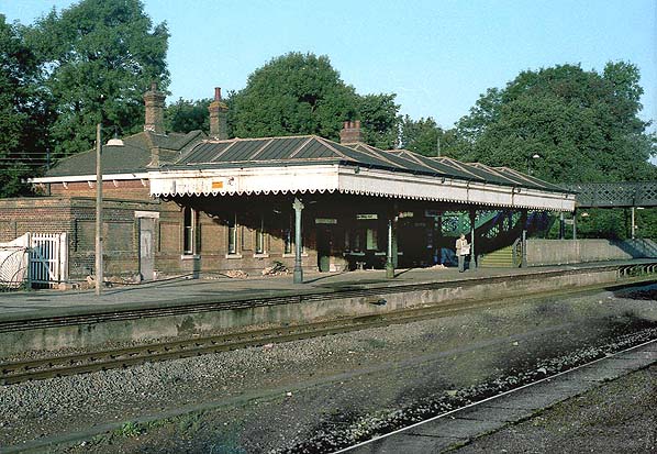 A solitary commuter waits on the up platform at Crowhurst station on 5 September 1984.