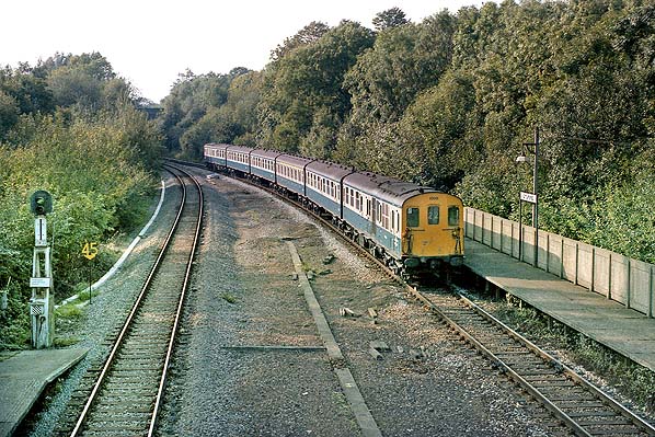 6S 1006 arrives at Crowhurst with the 14:45 Charing Cross to Hastings service on 13 September 1984.
