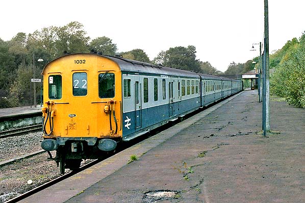 6L 1032 calls at Crowhurst on 26 October 1984 with the 13:45 Charing Cross to Hastings service. The bay line on the right is now heavily overgrown