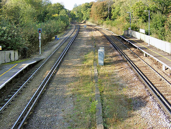 station looking north-west from the station footbridge in October 2007. Crowhurst No.1 signal box was beyond the down platform on the right