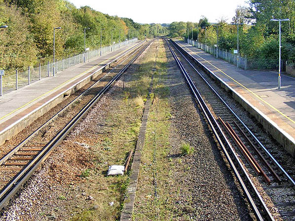 Crowhurst station looking south-east from the station footbridge in October 2007.