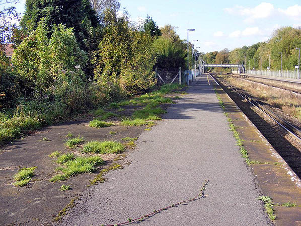 Crowhurst station looking north-west along the up platform in October 2007. The fencing of the bay lines stops before the end of the platforms.