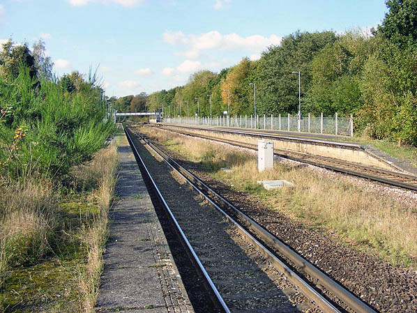 Crowhurst station looking north-west from the east end of the up platform in October 2007. This end of the platform is officially out of use and not maintained.
