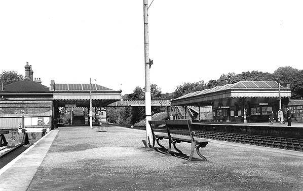 Crowhurst station looking north-west from the up platform in 1951. Trains from Bexhill would run into the up bay platform on the right. Crowhurst West signal box is seen under the footbridge.