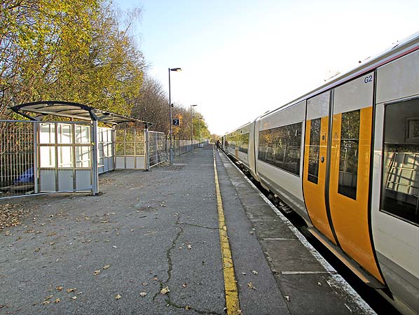 A Hastings train waits in the down platform at Crowhurst station in November 2013. Photo by Nick Catford