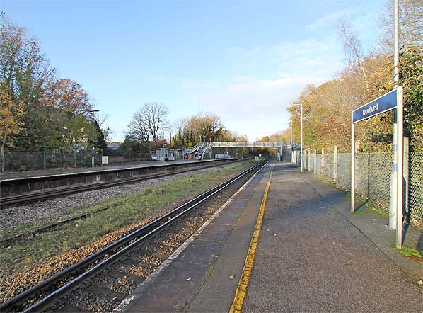 Crowhurst station looking north-west from down platform in in November 2013. The down bay line is behind the fence. Photo by Nick Catford