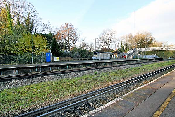 Crowhurst station up platform (platform 1) seen from the down platform (platform 2) in November 2013. Photo by Nick Catford