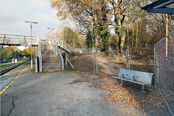 Crowhurst station platform 2 looking north-west from what would have been under the canopy in November 2013. A new entrance from the footpath from Forewood Lane is under construction. Photo by Nick Catford