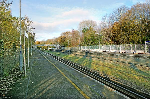 Crowhurst station looking north-west from platform 1 in November 2013. The bay lines are behind the fence on both sides. Photo by Nick Catford