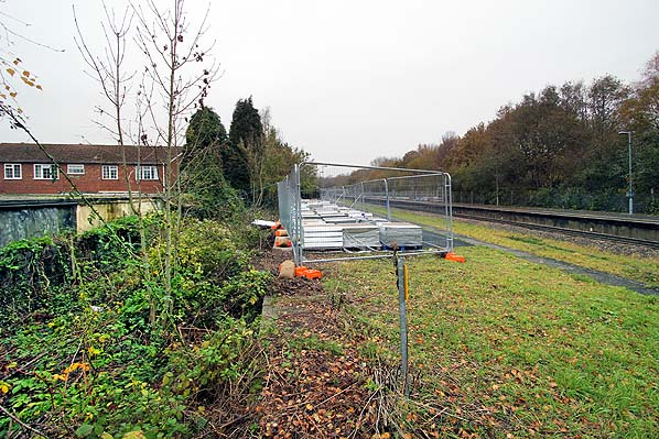 Crowhurst station looking north-west along the bay platform in November 2013. New platform edge stones are seen in the fenced compound. Photo by Nick Catford