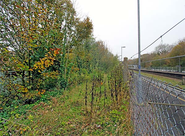 Crowhurst station looking north-west along the bay platform in November 2013. For most of its length the bay side is fenced off from the main line side. Photo by Nick Catford