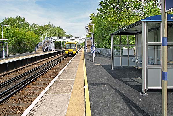 A southbound British Rail Class 465 Networker EMU arrives at Dunton Green station in April 2014