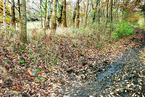 Looking north from the site of Earby station in November 2012. The much degraded remains of the up (towards Skipton) platform are seen.
